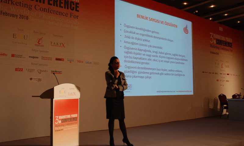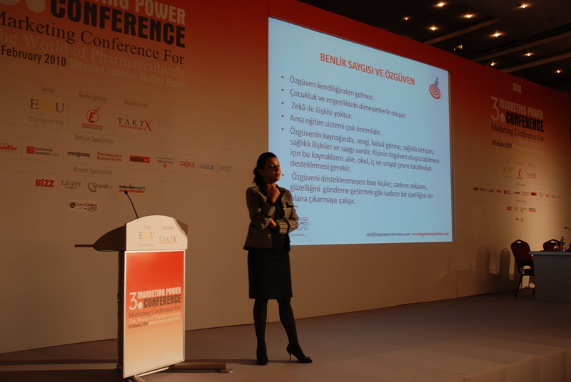 18 şubatta EDUPLUS tarafından gerçekleştirilen 3. MARKETİNG POWER CONFERENCE ( Marketing Conference For The World of Pharmaceuticals ) kapsamında Enstitü adına katılan Prof. Dr. Bengi Semerci “ İş Yaşamında Özgüven Kazanmak ve İnsan İlişkilerinde Başarılı Olmak” başlıklı ana oturumu gerçekleştirdi. Özgüven ile ukalalık sınırının ince bir çizgi olduğunu vurgulayan Semerci, başarı için güçlü ve zayıf yönlerin iyi belirlenmesi ve hedeflerin bu bağlamda oluşturulmasının önemi üzerinde durdu. İlaç sektörü ve eczacıların katıldığı konfrerans ilaç sektörünün geleceğe yönelik beklentileri, deneyimleri ve sorunlarının konuşulduğu oturumlarla devam etti.