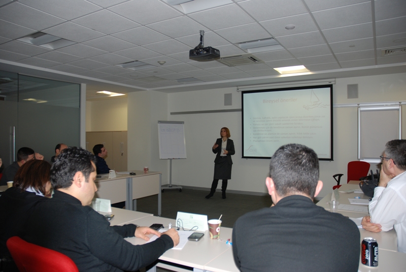 Prof. Dr. Bengi Semerci and Aslı Soyer, MS. realized a full day seminar on 12.02.2010, on Stress Management. The participants, pointing out that employees and managers in all sectors are having problems due to stress, and that this situation adversely affected the productivity and functionality of the establishment, said that at the end of the seminar, they were leaving with experiences they could apply to deal with stress. The seminars, giving theoretical and applied training, will continue with the heading, ‘Motivation and Gaining Self Confidence at the Work Place’.